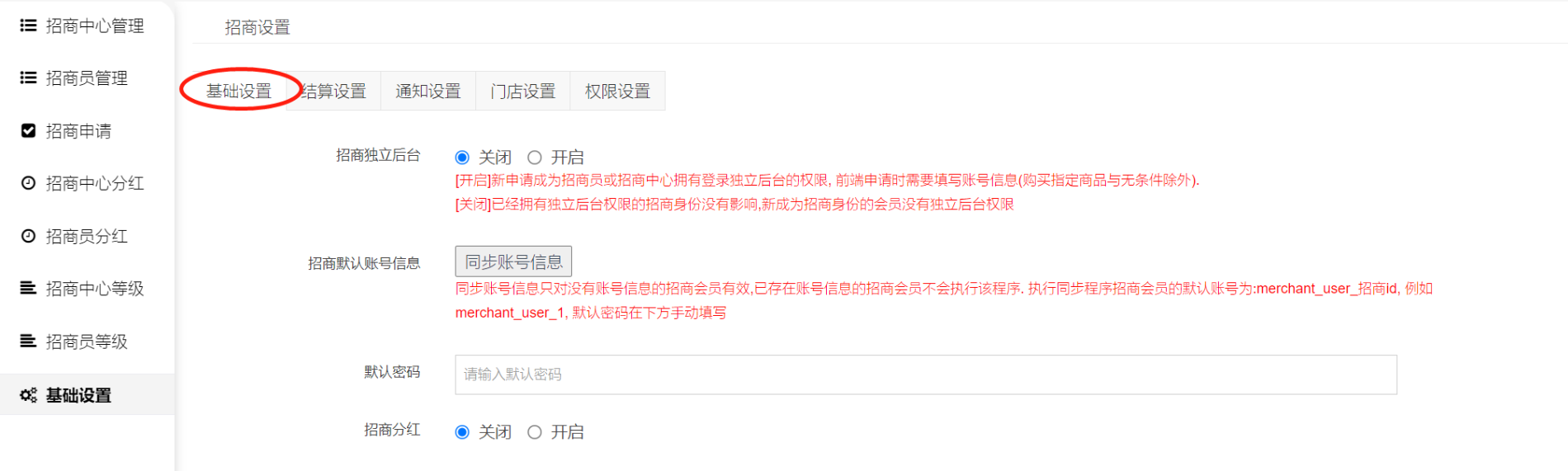 1、招商基础设置