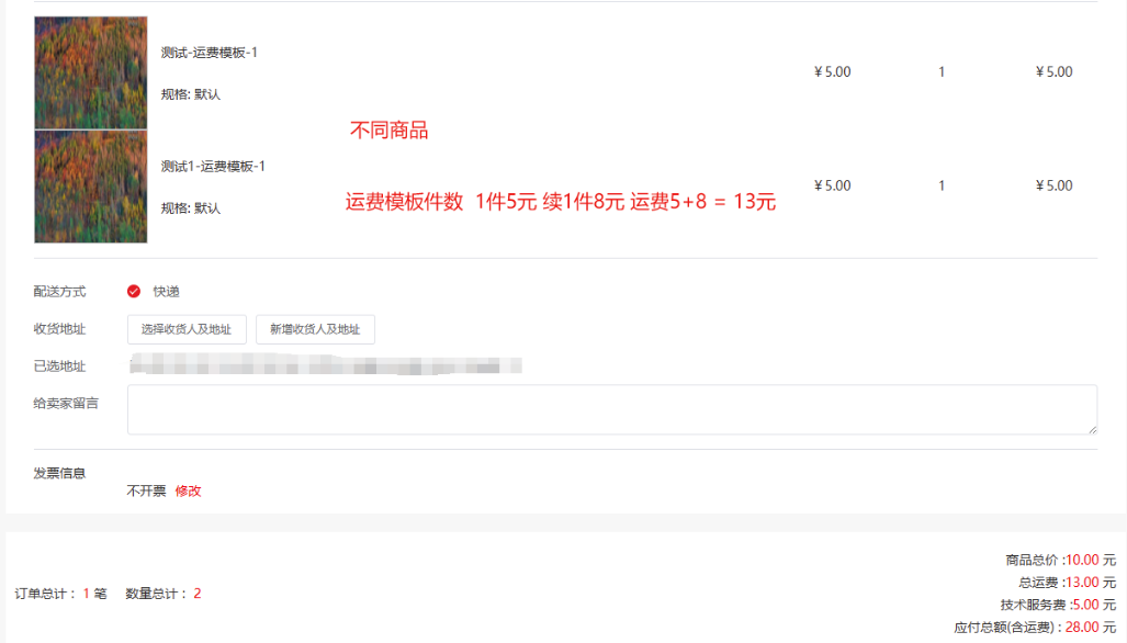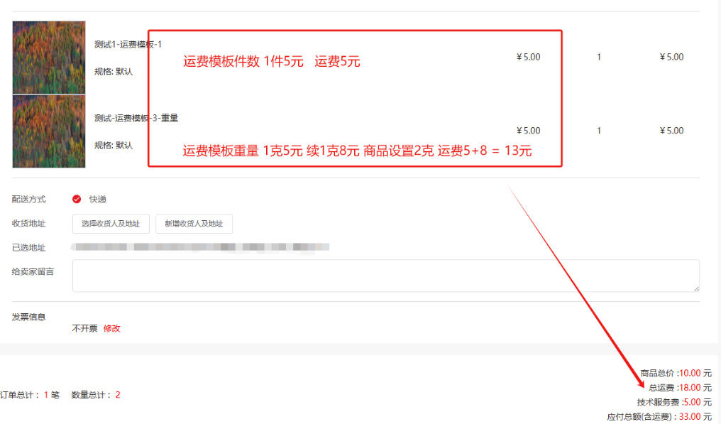 4)统一运费商品,和运费模板商品一同结算:单独计算统一运费商品应收运费,再累加运费模板应收运费;